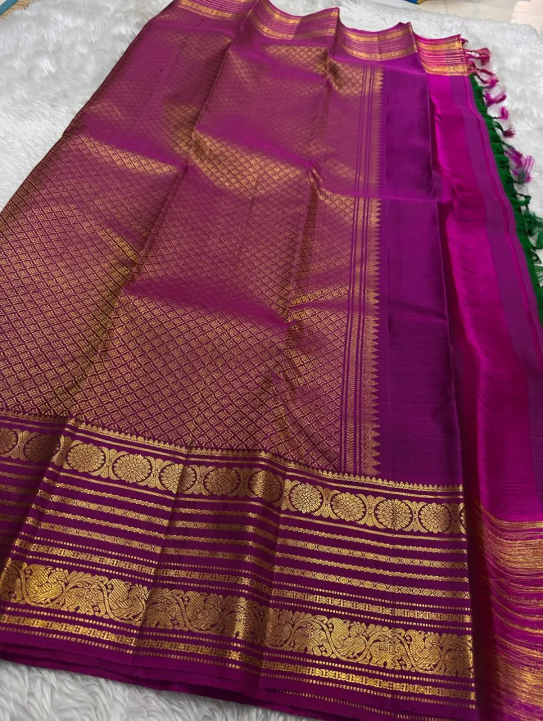 Fabric: Silk (likely Kanchipuram Pattu/Kanjivaram).