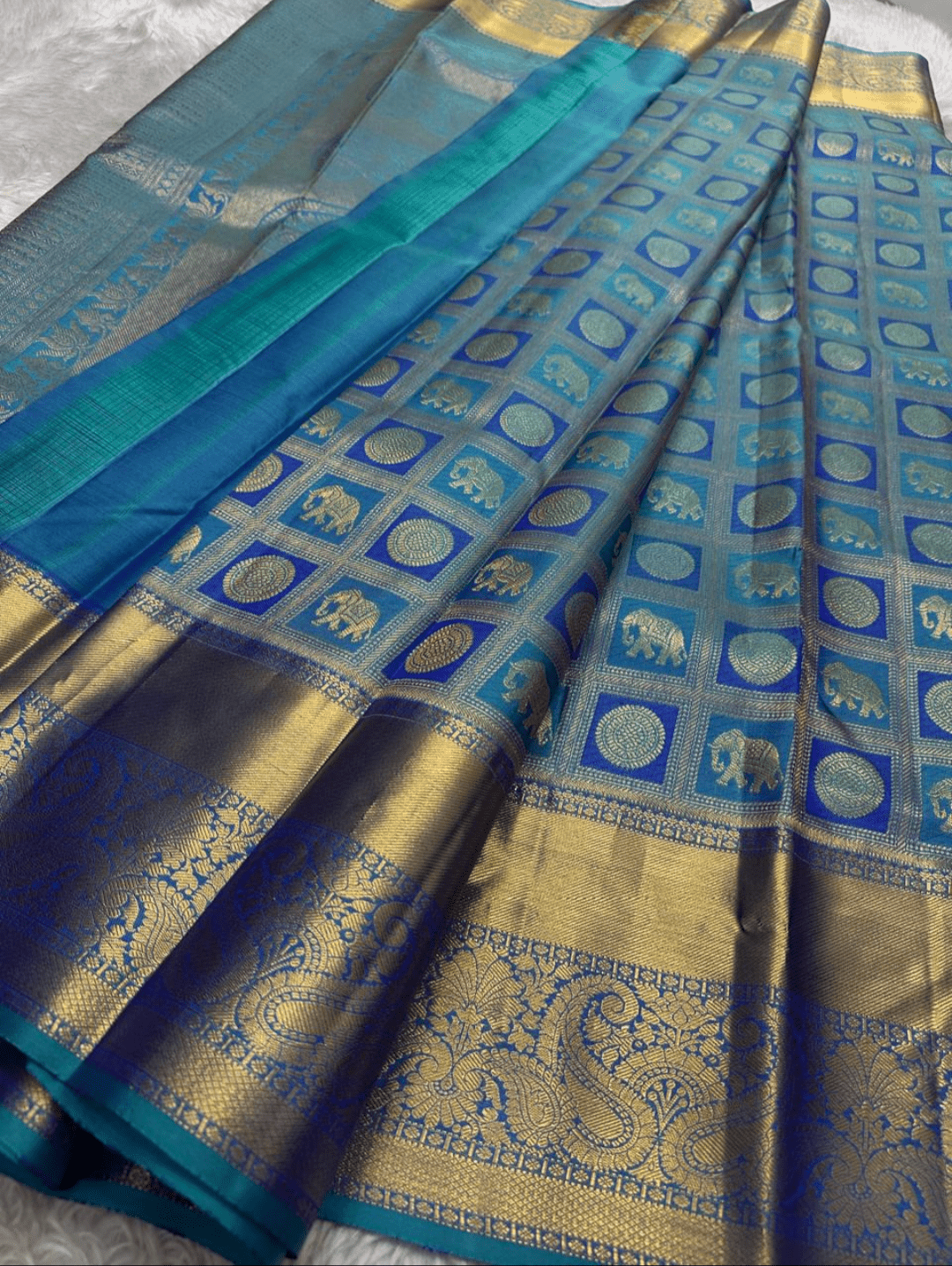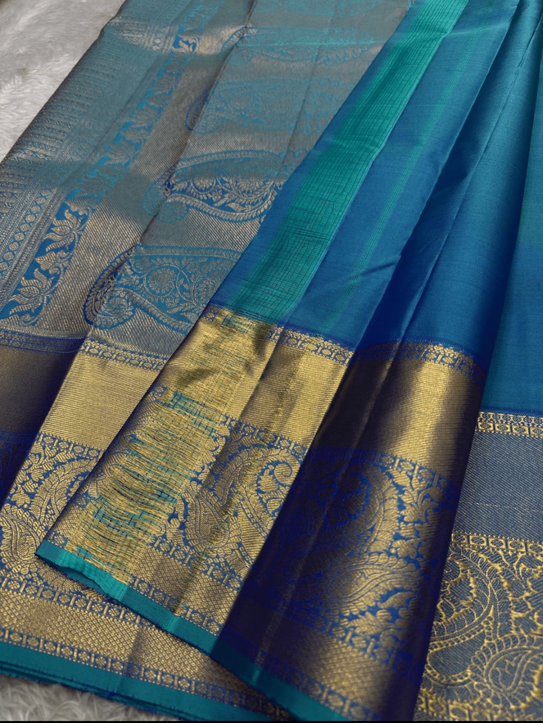 Color: A captivating blend of deep and light blue, complemented by a lustrous golden border.